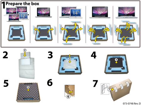 - Pack only the Apple computer in the box provided.