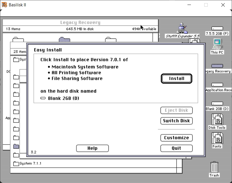 • Do an Easy Install, (figure 7, install 7.0.1 for the system Basilisk II is emulating)