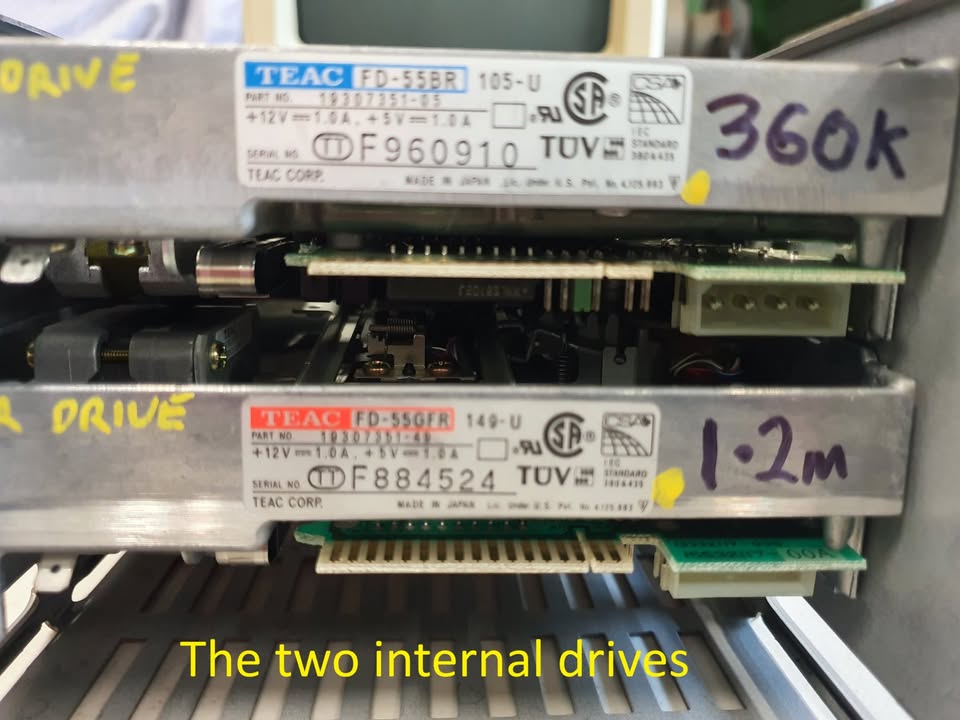 I now have two DaynaFile enclosures, one with a 360KB FD-55BR-500-U drive, and the second with a 1.2MB FD-55GFR-149-U drive, I plan to combine the drives in a single enclosure….. if I can sort out the jumper settings for each drive.