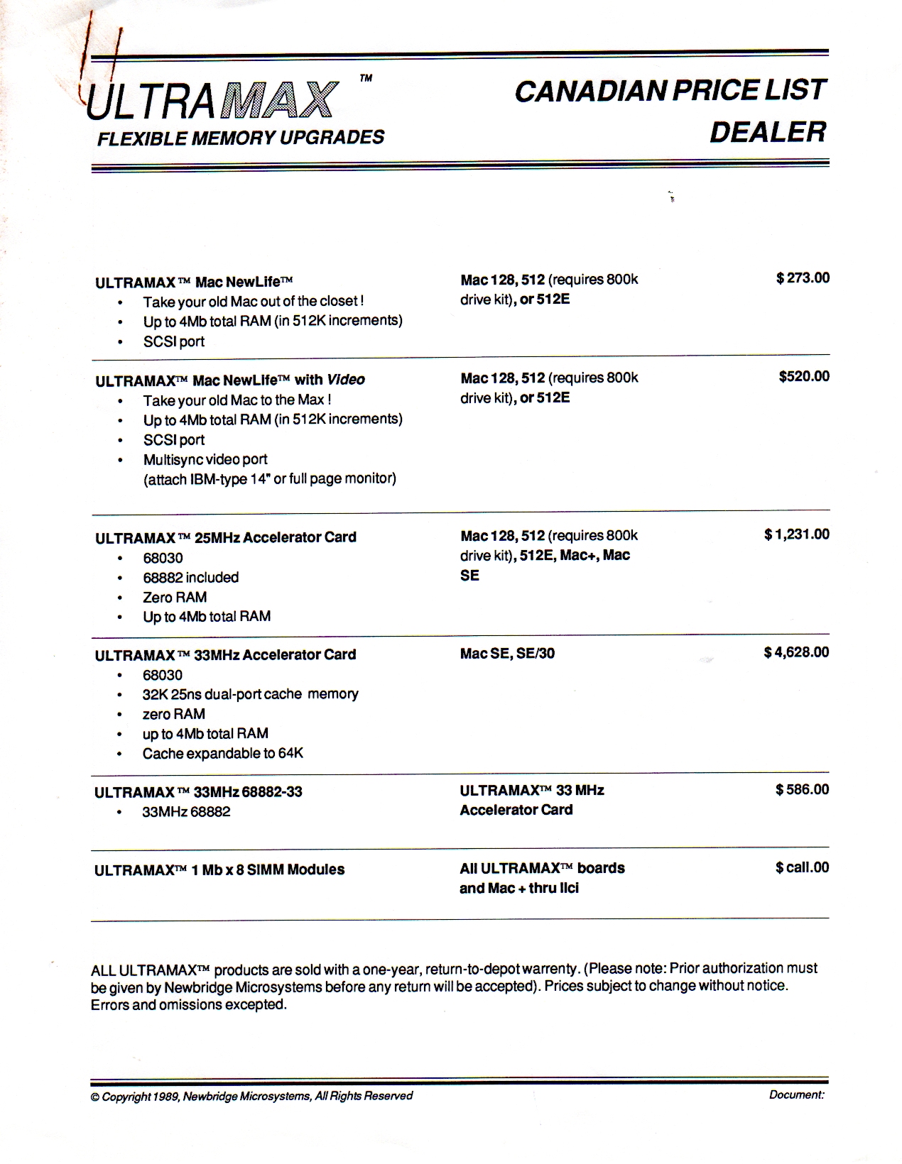 In September of 1989 Newbridge Microsystems announced their new product line under the brand name Ultramax: