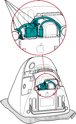 DISCUSSION (This information is gleaned from the Info Center online help system, which is located on your computer's hard disk.) ( Note: The first half of this procedure is covered in Article 43012: iMac: Installing Memory (1 of 2) 16. If you moved around the room at all, you may have generated some static electricity. Touch any exposed metal on the logic board/drive assembly. This helps protect the computer from damage caused by electrostatic discharge. 17. Carefully snap off the metal shield by lifting both sides.