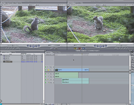 Figure 6 Final Cut Pro with 16:9 DV Clips Loaded Into Both the Viewer and Canvas Importing Anamorphic 16:9 Clips from Tape Final Cut Pro gives you a great deal of flexibility when it comes to importing Anamorphic 16:9 material for editing. Some cameras have the ability to embed information regarding the user's selected aspect ratio directly onto the videotape. When a user presses the "16:9 Wide" button on these cameras, the DV stream recorded to tape includes this information, and Final Cut Pro 1.2.5 will automatically detect this and mark the resulting imported QuickTime clip as Anamorphic 16:9. This will happen regardless of whether or not the "Anamorphic 16:9" button is checked in the "Capture" Preferences tab.
